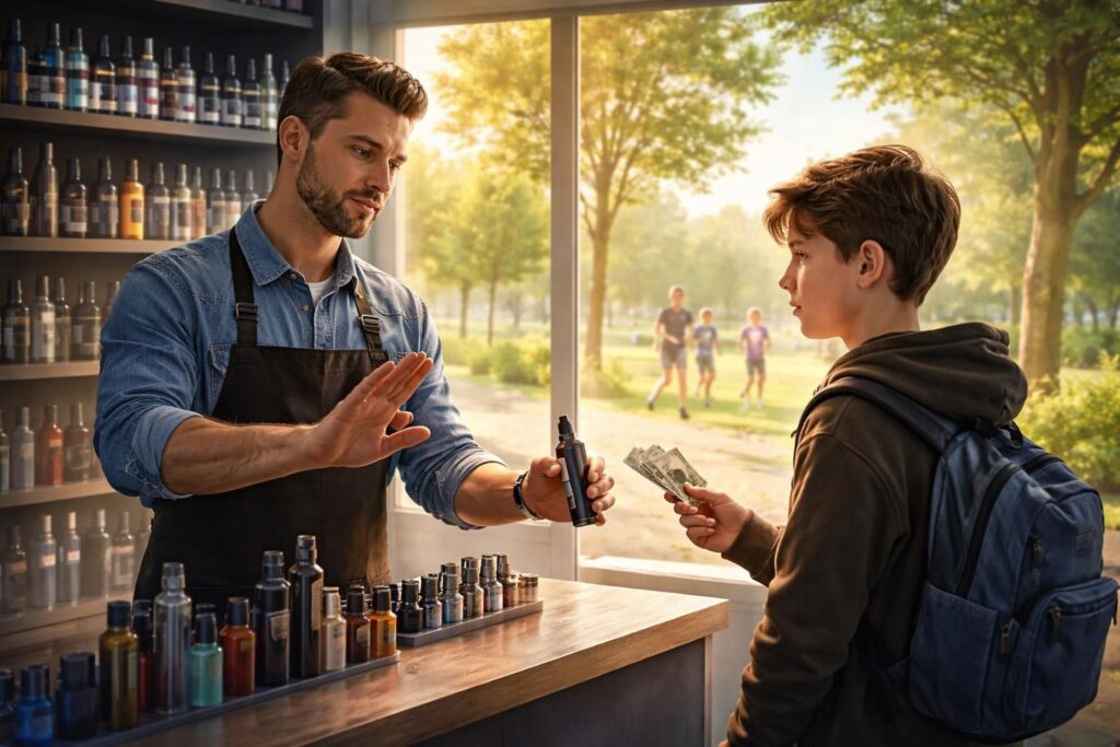 En France, la réglementation sur la vente de produits de vapotage est claire. L’article R. 3515-6 du Code de la santé publique stipule que la vente, ainsi que l’offre gratuite de produits de vape, est interdite aux personnes de moins de 18 ans. Cette interdiction trouve son origine dans le besoin de protéger les jeunes des risques associés à la consommation de nicotine. Des affiches réglementaires rappelant cette interdiction doivent être présentes et visibles dans tous les points de vente.