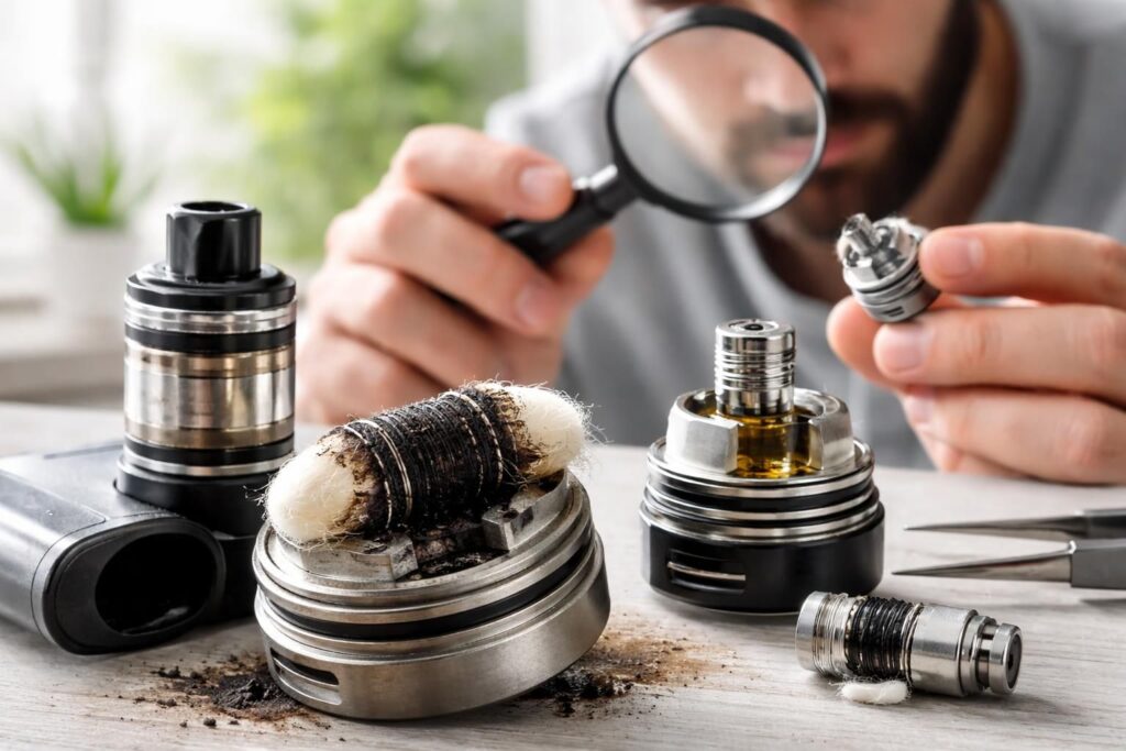 Alerte sur les signes : goût âcre, baisse de production de vapeur, coloration sombre du coton, sifflements étranges, et e-liquide décoloré sont des indicateurs qu’il faut procéder à un remplacement.
